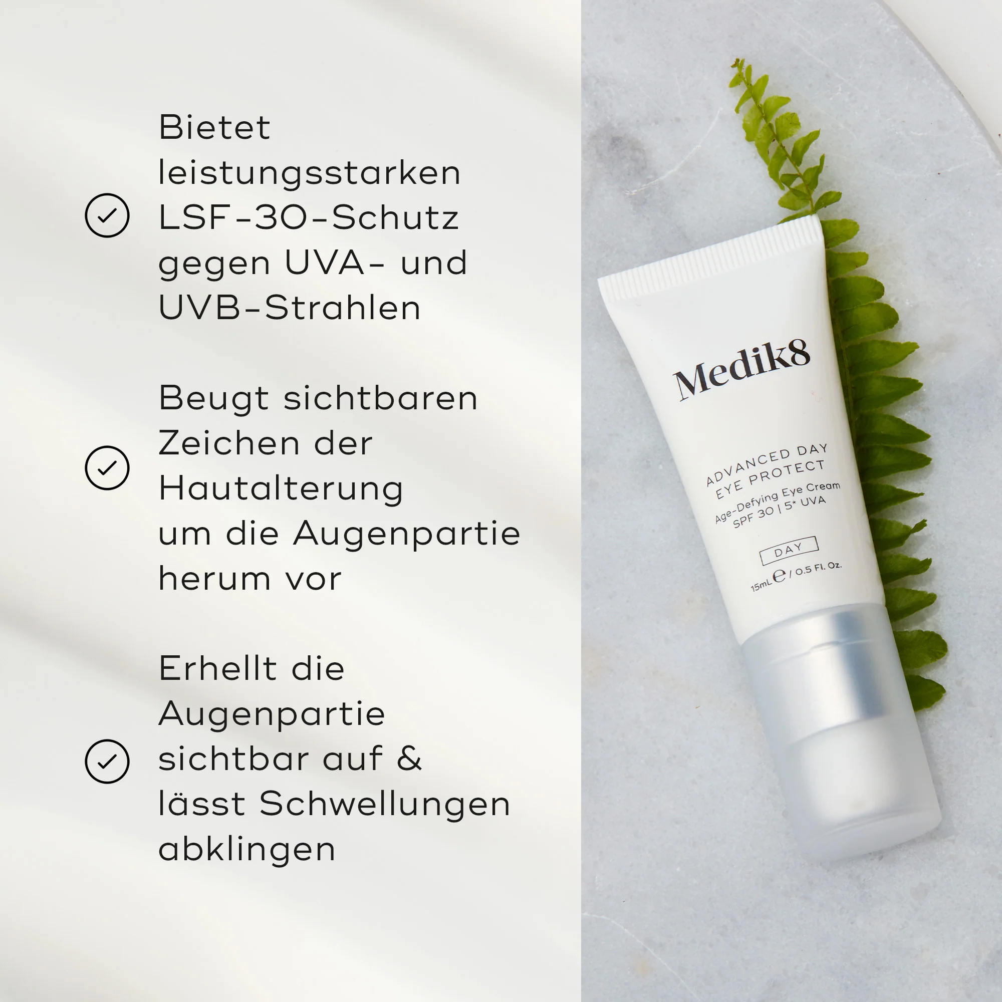 Advanced Day Eye Protect bietet SPF 30 5* UVA-Schutz, um die empfindliche Augenpartie vor den schädlichen und alternden Auswirkungen von UV-Strahlen und Umweltbelastungen zu schützen.